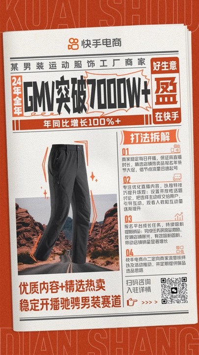 在快手电商生态中,包括新老商家、大中小商家在内的不同类型、不同阶段的泉州男装运动产业带商家,均能找到契合自身需求的高效增长路径和经营方法,实现生意新突破。