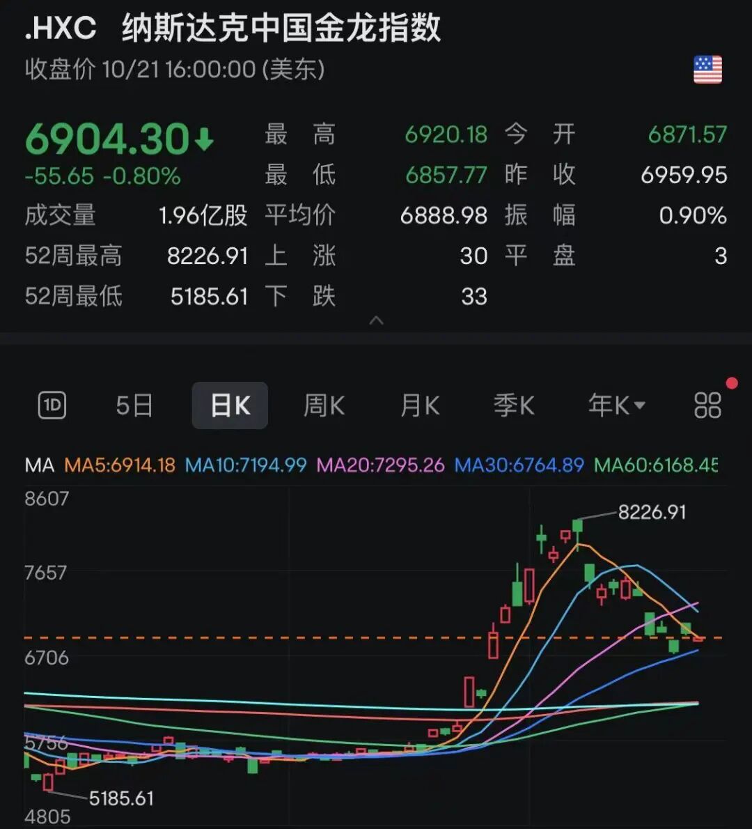 中概股方面,纳斯达克中国金龙指数跌0.8%。