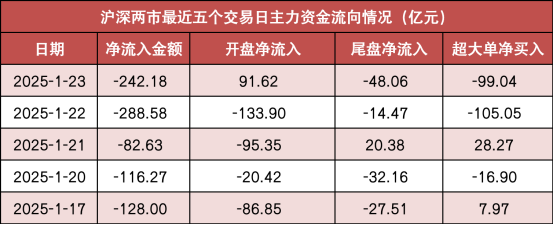 今日沪深两市主力资金开盘净流入91.62亿元,尾盘净流出48.06亿元,全天净流出242.18亿元。