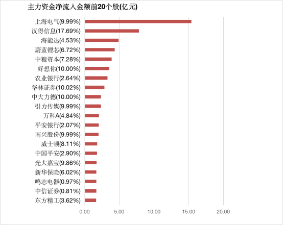 4.主力资金净买入前20股