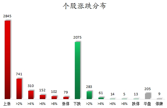 盘面上看,化纤、农业、地产、建筑、酿酒等板块走高,种业、粮食概念、飞行汽车概念等活跃;券商、银行板块疲弱。